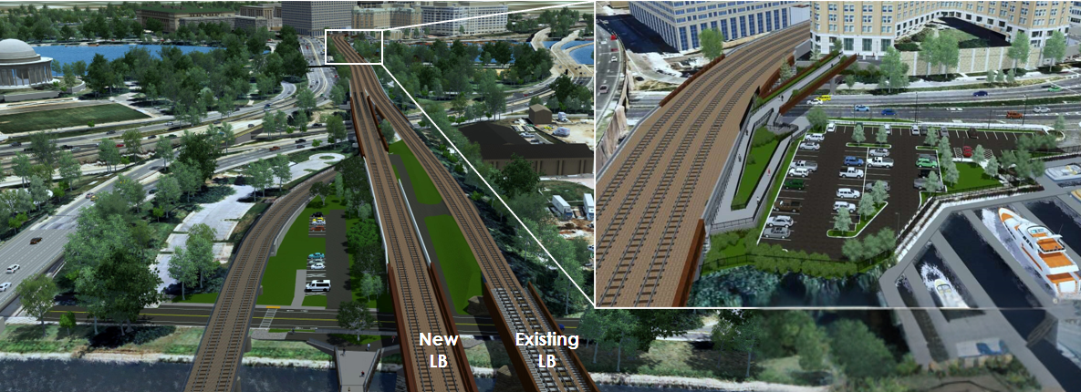 The Long Bridge Project is one of the largest railroad construction projects undertaken in the Commonwealth in decades. It includes much more than a new two-track passenger rail bridge across the Potomac River. In its entirety, the project encompasses construction of a total of seven new bridges, five for rail and two for pedestrians and cyclists. In Washington, DC, these bridges stretch from just south of L’Enfant Plaza across Maine Avenue, the Washington Channel, and I-395 to the Potomac River.
